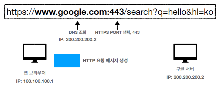 - 웹 브라우저가 HTTP 요청 메시지를 생성