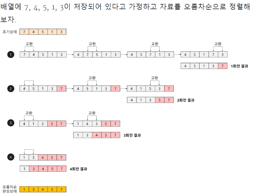 버블 정렬 알고리즘에대해 구체적인 개념을 살펴보면 아래와 같이 요약할 수 있다.